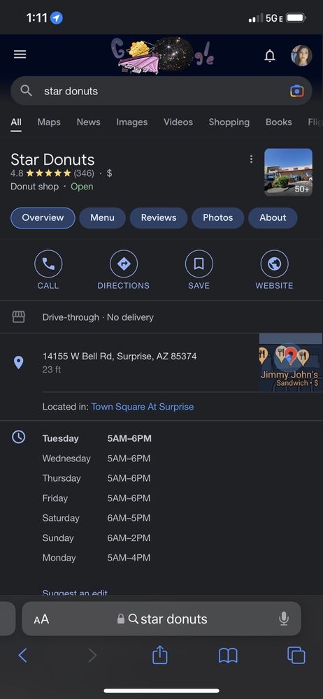 Star Donuts, located in Surprise, AZ, is a popular spot known for its fresh and delicious donuts. The owner, an Asian-owned establishment, takes pride in serving a variety of smoothie drinks alongside their delectable pastries. Customers rave about the old-fashioned buttermilk bars, maple bars, and apple fritters, praising the reasonable prices. Although the coffee may not be a standout, the quality of the donuts and kolaches makes up for it. With a welcoming atmosphere, quick service, and options for takeout and delivery, Star Donuts is a go-to destination for donut lovers. From the friendly greeting upon entering to the excellent customer service, this family-owned donut shop has garnered a loyal following for its exceptional treats.